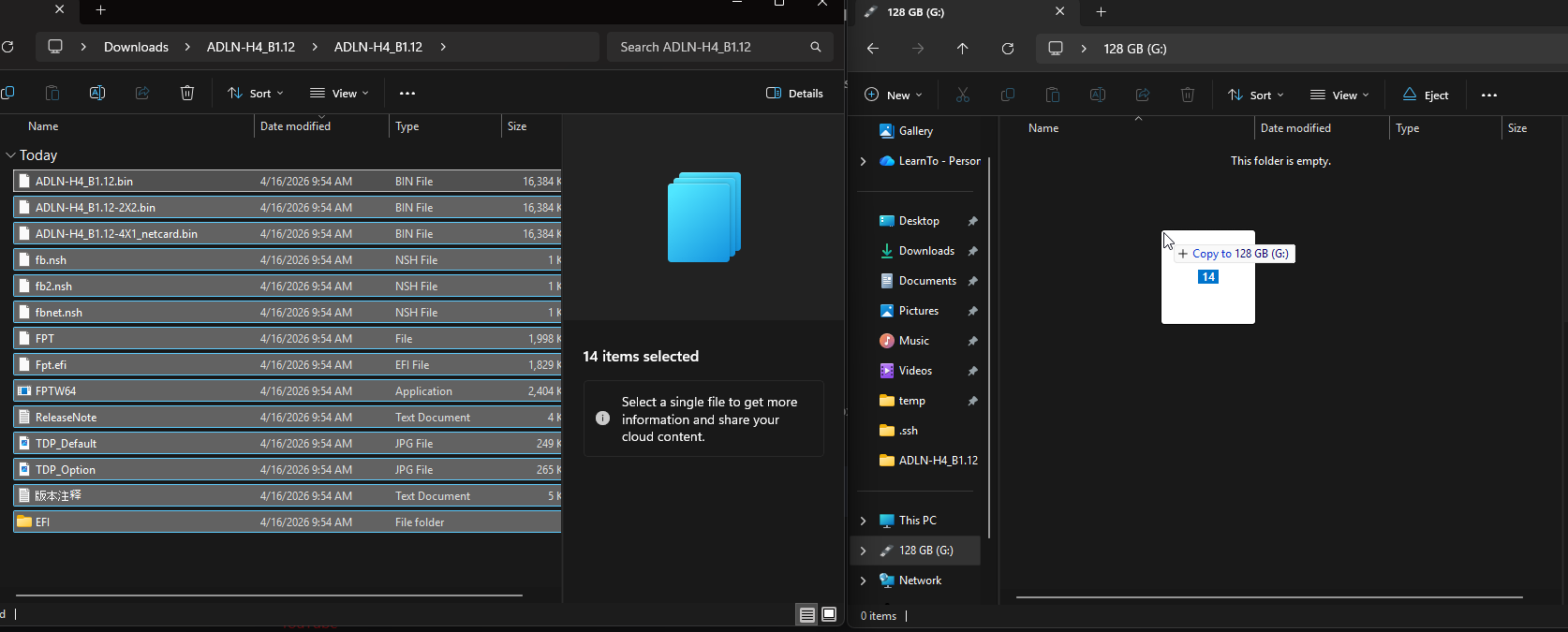 Then drag and drop the extracted files on to your USB device