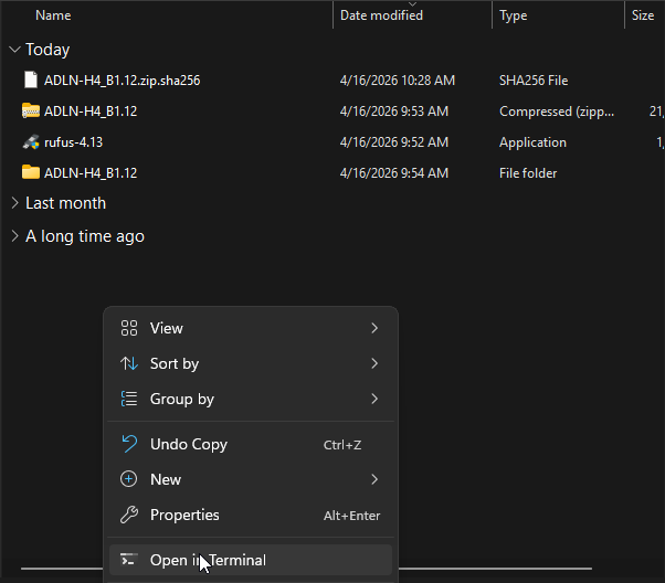 - Right click in some “white space” and select “Open in terminal”