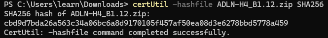 - Use this command to verify the hash of the file (ensure you are checking the .zip file) and not the .SHA256 file.